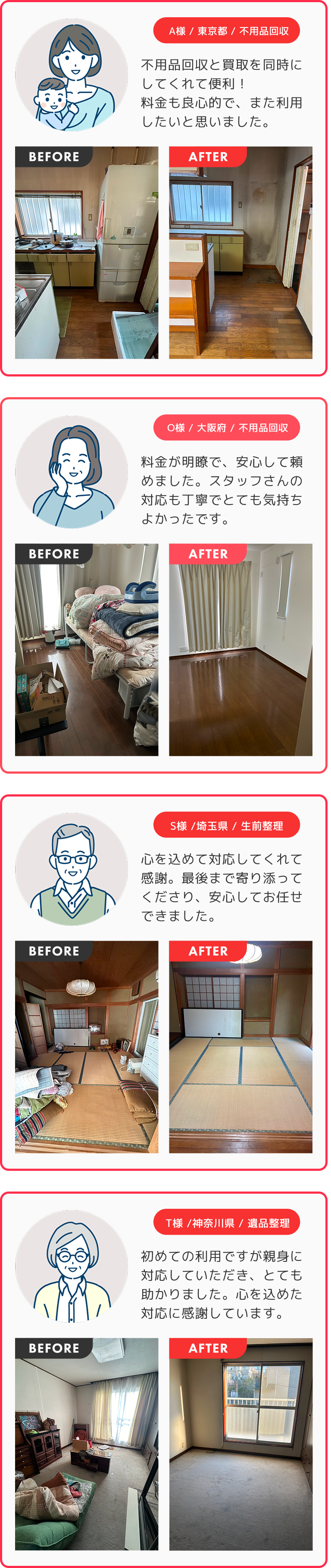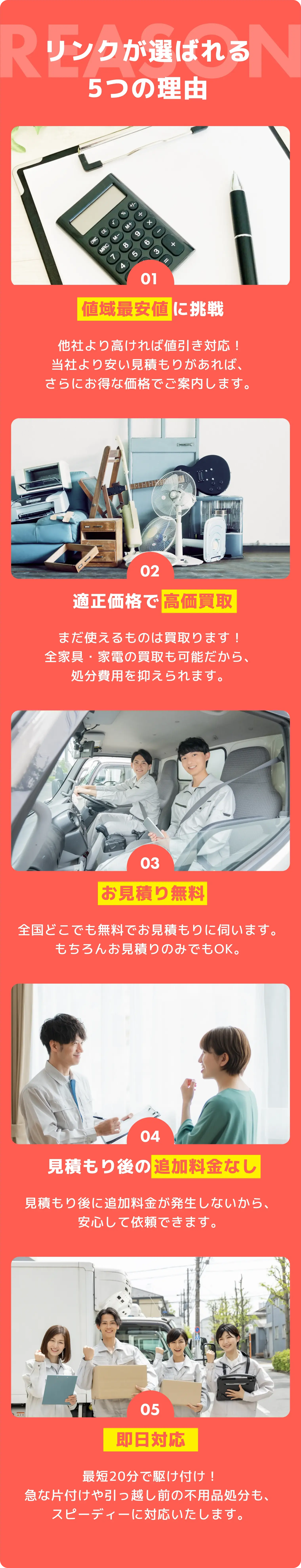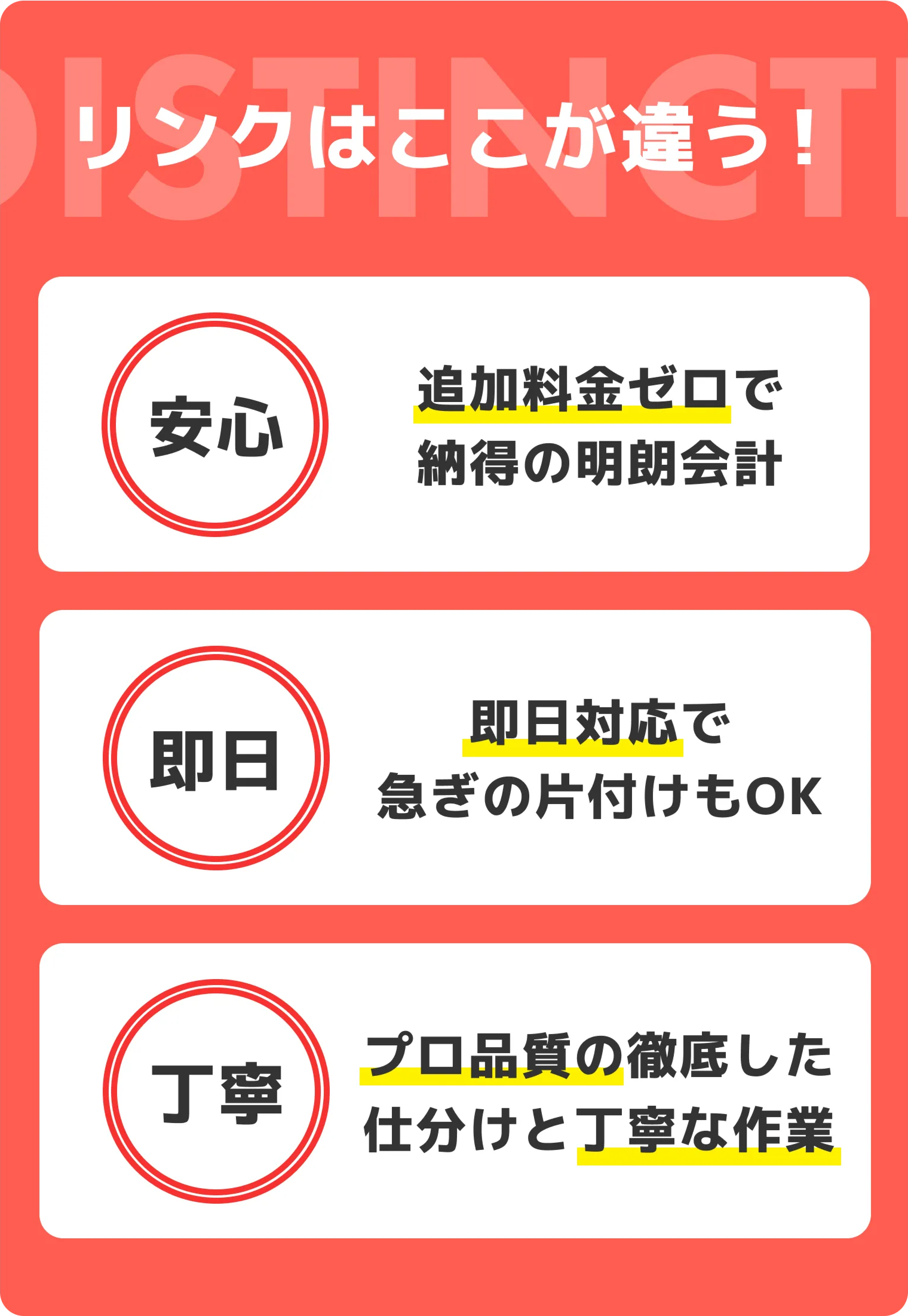 - Aお見積もり後に追加料金が発生することは一切ございません。