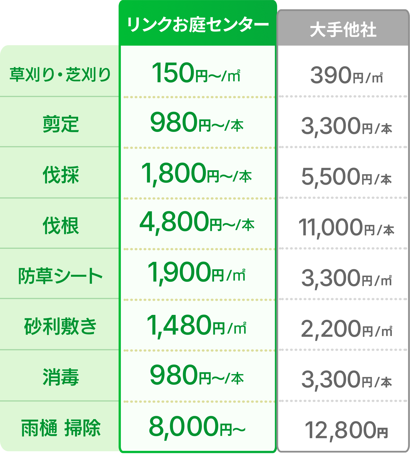 - リンクお庭センターのスタッフは、数多くの作業を行ってきております。安全を第一に考え、作業させていただきますのでご安心ください。